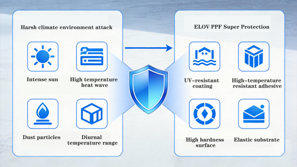 The rise of PPF in the Middle East is a direct response to a clear and pressing need. It is a market that rewards performance and punishes compromise. ELOV does not offer a generic global product; we provide a climate-engineered solution designed to deliver flawless protection and aesthetics where it matters most.